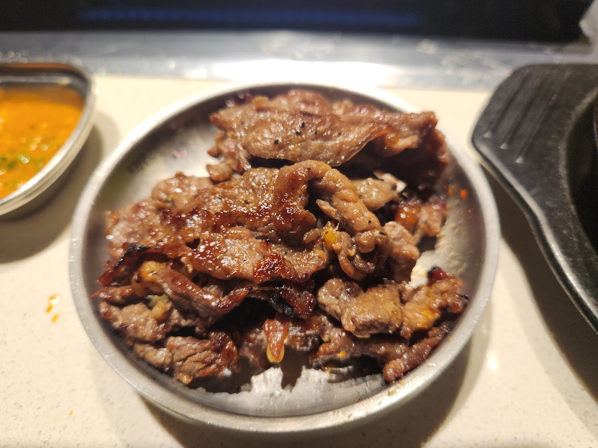 I want to start by saying the service was absolutely amazing and that Chad E was a really great server and answered all my questions l, made sure our drinks were full and on top of making sure we had plenty of food. I would highly recommend him as your waiter. We got the Ultimate AYCE and from my understanding everything is fresh and the prime meats are cut to order. They gave us a very big ribeye steak, the beef ribs and galbi were great too. You could just tell the quality of the meat was better here. The marinade is a bit on the sweeter side
